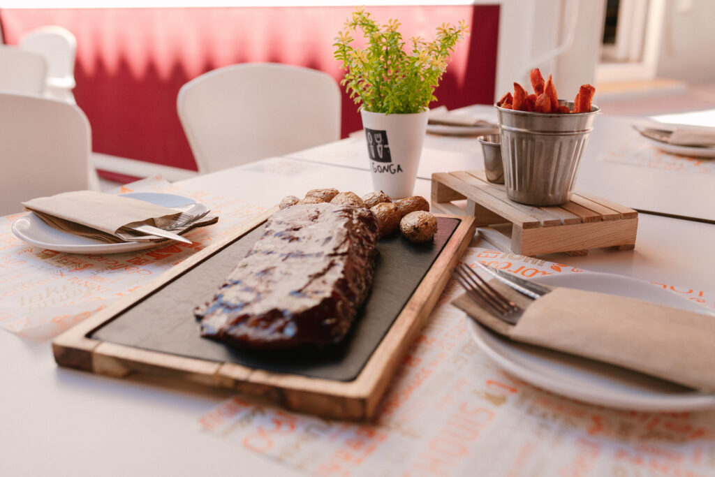 ENTRECOT DE TERNERA TRINCHADO CON GUARNICIÓN